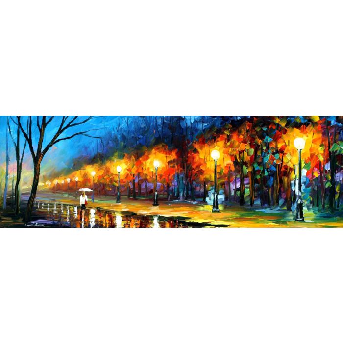 This is an original oil painting by Leonid Afremov. It is made with high-quality oil paint on top of 100% linen canvas. An original oil painting is a direct result of the artist's creative process. This is a unique piece. Leonid Afremov has spent weeks making this painting using nothing more than his imagination and inspiration. This piece holds the real artistic soul of Leonid Afremov. The certificate of authenticity will include the name of the owner who purchased the piece of art. The certificate is signed by Leonid Afremov