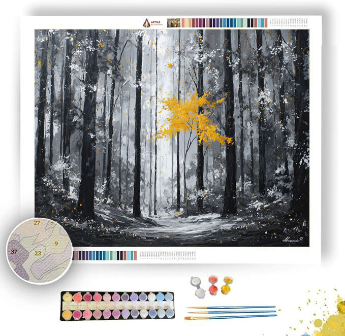 SILVER FOREST WITH GOLDEN FALL B&W - Paint by Numbers Full Kit