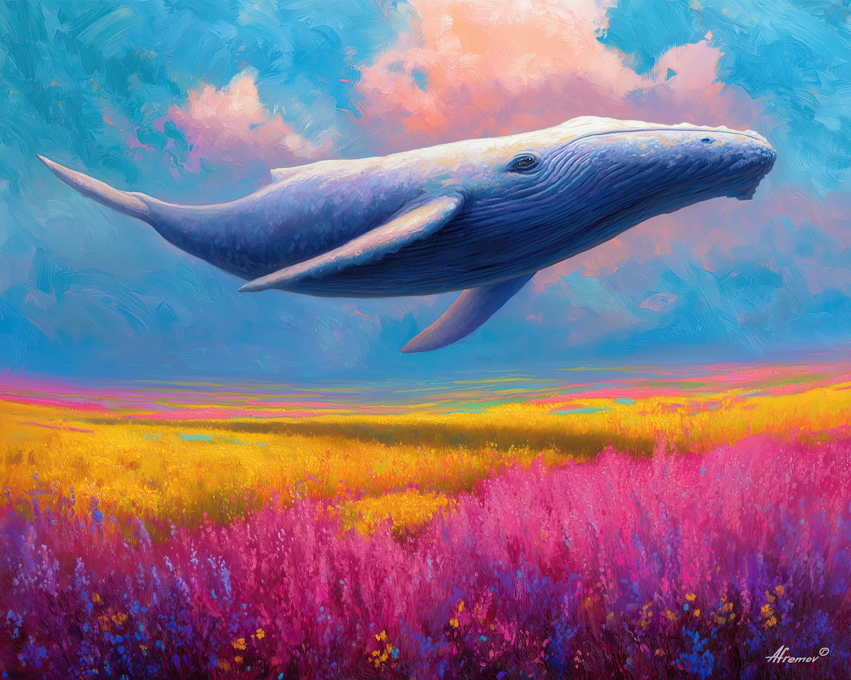 SKY WHALE ABOVE MEADOWS - Paint by Numbers Full Kit