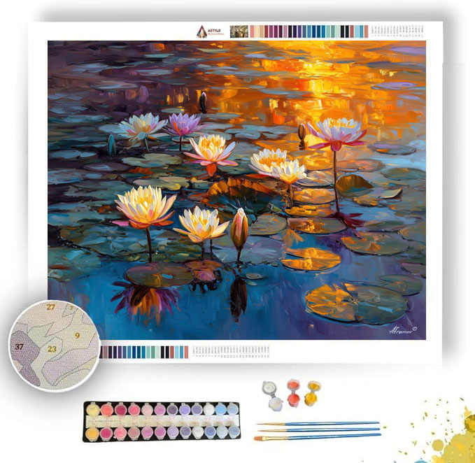 THE GOLDEN LOTUS POND - Paint by Numbers Full Kit