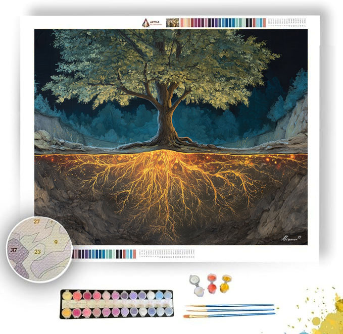 TREE WITH DRAWN ROOTS - Paint by Numbers Full Kit