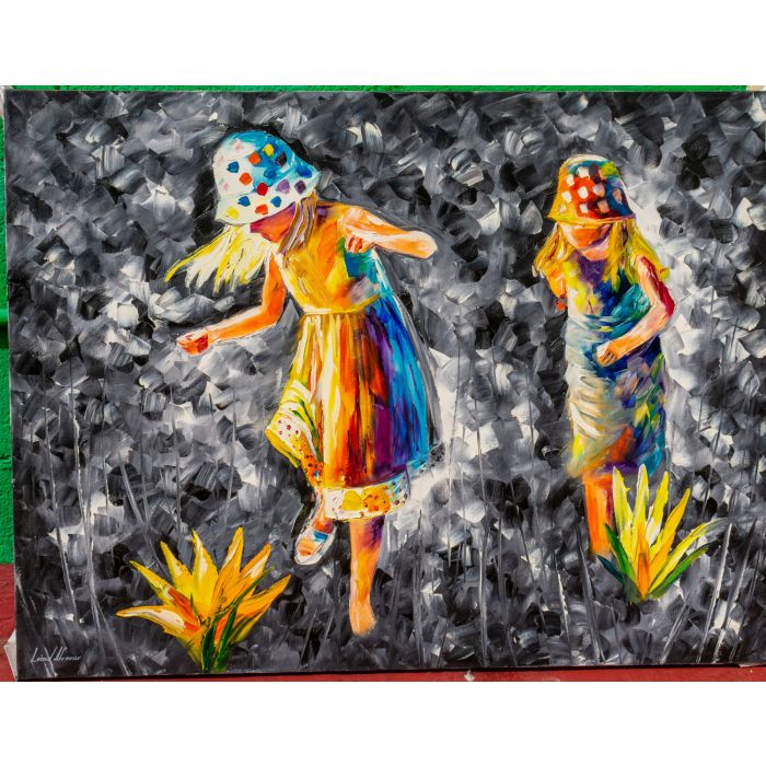This TWO SISTERS B&W panting is the last one available from the limited edition, it is 10th out of 10 paintings. The photos you see for this listing are actual photos taken with a phone of the painting you will receive.