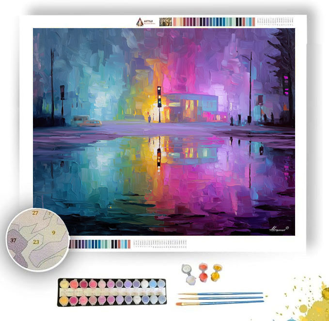 Meticulously divided and numbered, the canvas acts as a helpful guide for enthusiasts to recreate the vibrant scene step by step.