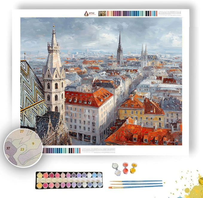 VIENNA ST STEPHENS SPIRE ABOVE ROOFS - Paint by Numbers Full Kit