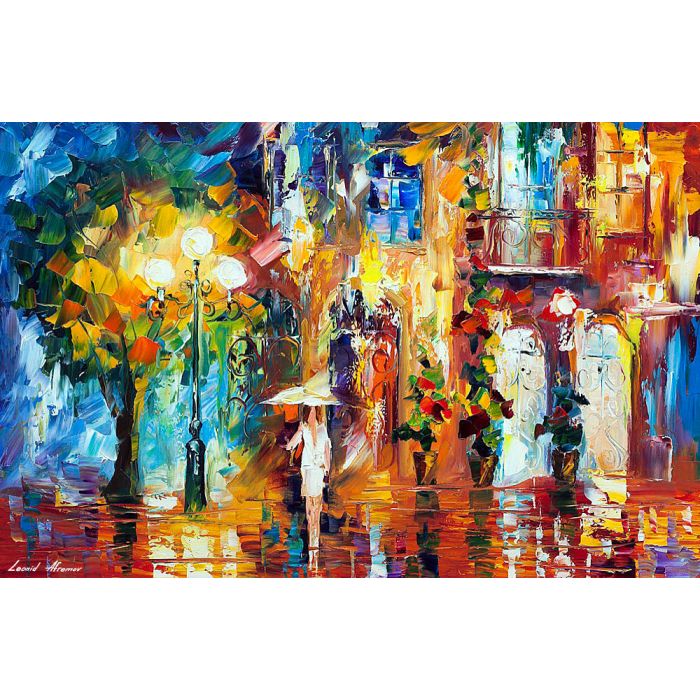 This piece was created with the same amount of soul and emotion just like the first original painting. This piece was created with oil paint on artistic canvas using unique Afremov technique of a palette knife. The artwork has texture, you can feel the strokes by touching the painting. By purchasing on this site, you are buying directly from Leonid Afremov®. We guarantee your satisfaction and the best customer experience.