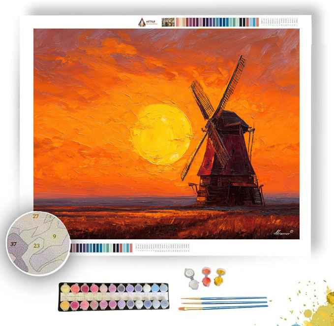 WINDMILL AT SUNSET - Paint by Numbers Full Kit