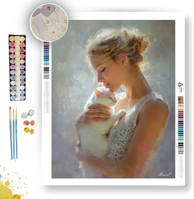 WOMAN WITH A WHITE CAT - Paint by Numbers Full Kit